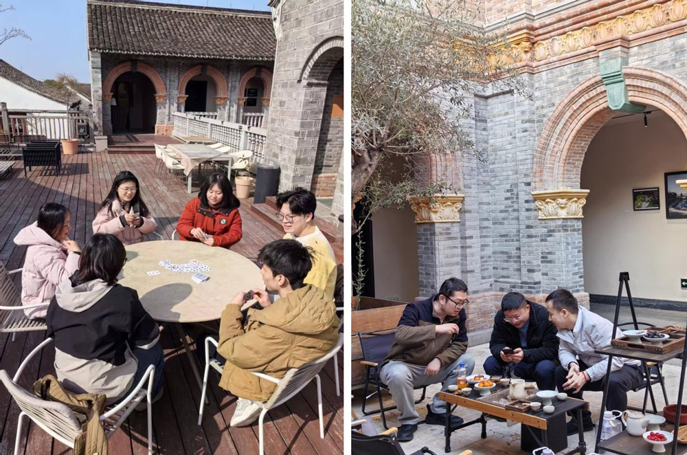 午后的东钱湖,晴光铺洒湖面,暖意浸润心田。众人围炉煮茶,炭火温汤,茶香与笑语交织,在湖光山色间卸下一整年的忙碌,尽享松弛安然的相聚时刻。